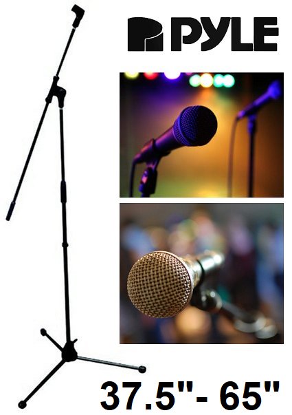 PYLE Tripod Microphone Stand with Height Adjustable from 37.5" to 65" with Extending Boom Arm Up to 28”- Black (PMKS3)
