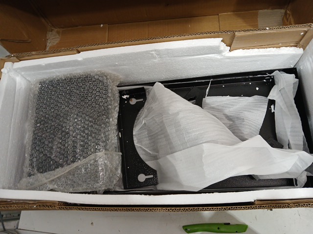 Although the product looks new and the pieces are accounted for, there is a significant amount of debris inside of the package and slight warping to some of the pieces, most likely from shipping.