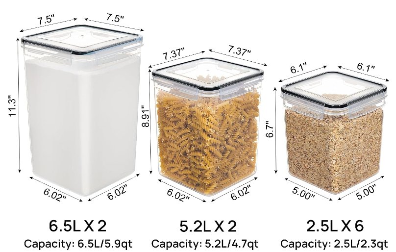 10PC Vtopmart Airtight Food Storage Containers with Lids - 6.5L/5.2L/2.5L - clear - (model: svm0201011)