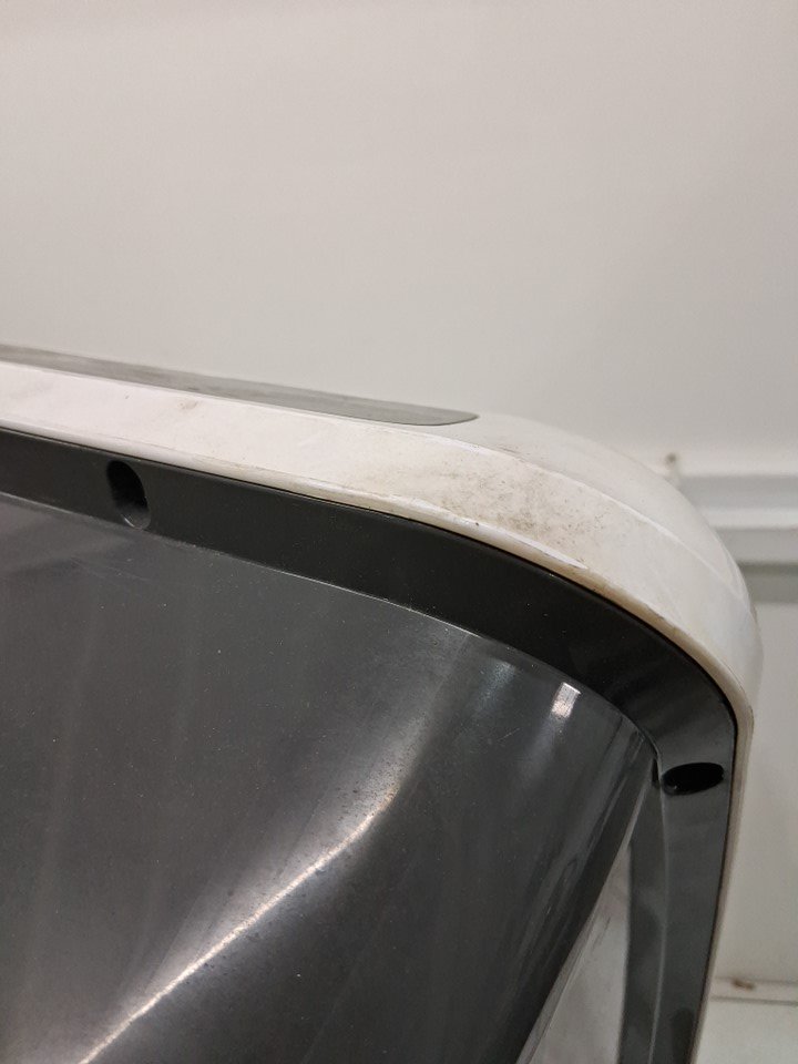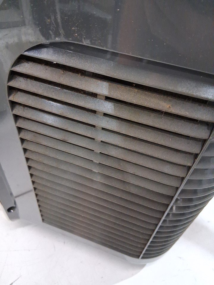 Product was tested for power and function however the product and it's accessories are severely coated with some sort of dust and oily substance all throughout the product which has also stained the product quite heavily. On top of a stained and dirty cosmetic appearance there is also a dusty odor when operating the product which is quite noticeable.