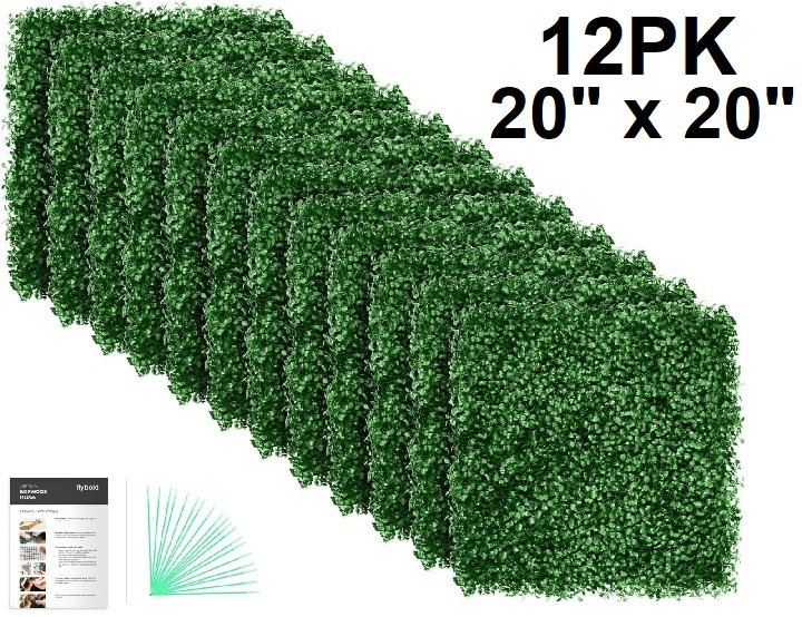 12pk flybold articial boxwood hedge privacy panels - 20" x 20" - green (model: ddrpl22)