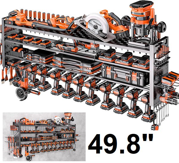 Shomextol Heavy Duty wall mounted Tool Organizer rack - 49.8" - black