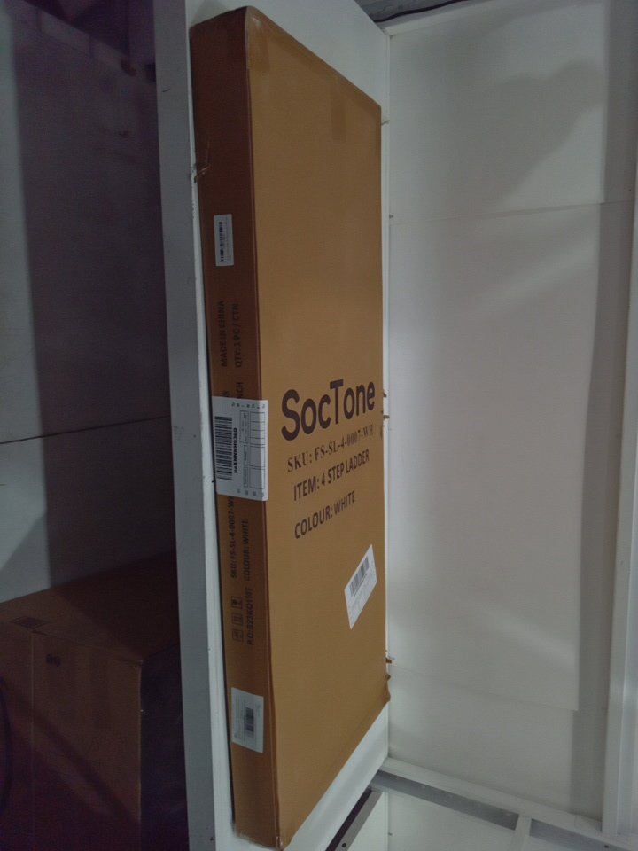soctone 4-step Folding step ladder with Tool Platform - upto 330lbs - white/black (model: fs-sl-4-0007-wh)