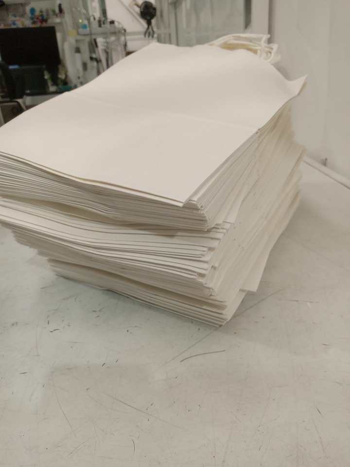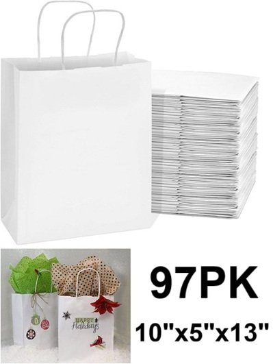 100pk prime line packaging folding craft paper gift bags with handles - 10" x 5" x 13" - white