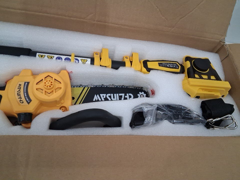 GISAM 2-in-1 Electric Pole Saw for Tree Trimming, 8" Mini Chainsaw Cordless with Extension Pole with 2 Batteries - 15.58 FT Reach