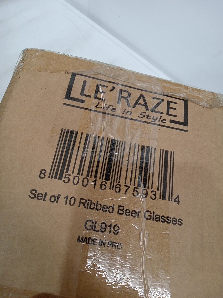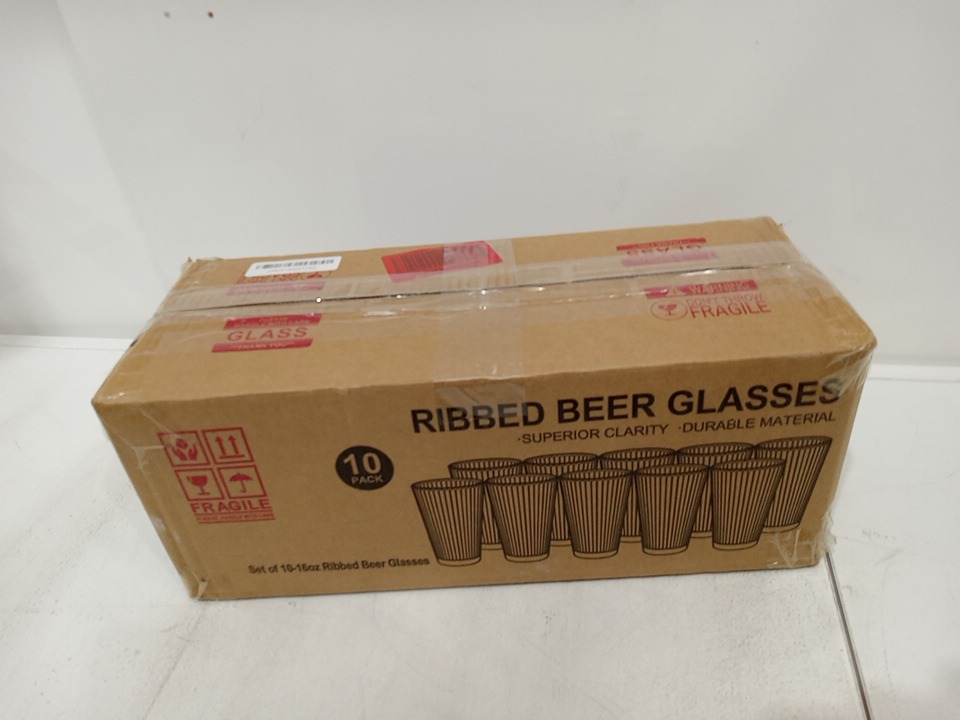 10pk Le'raze ribbed glass Drinking Glasses, 16oz - clear (model: gl919)