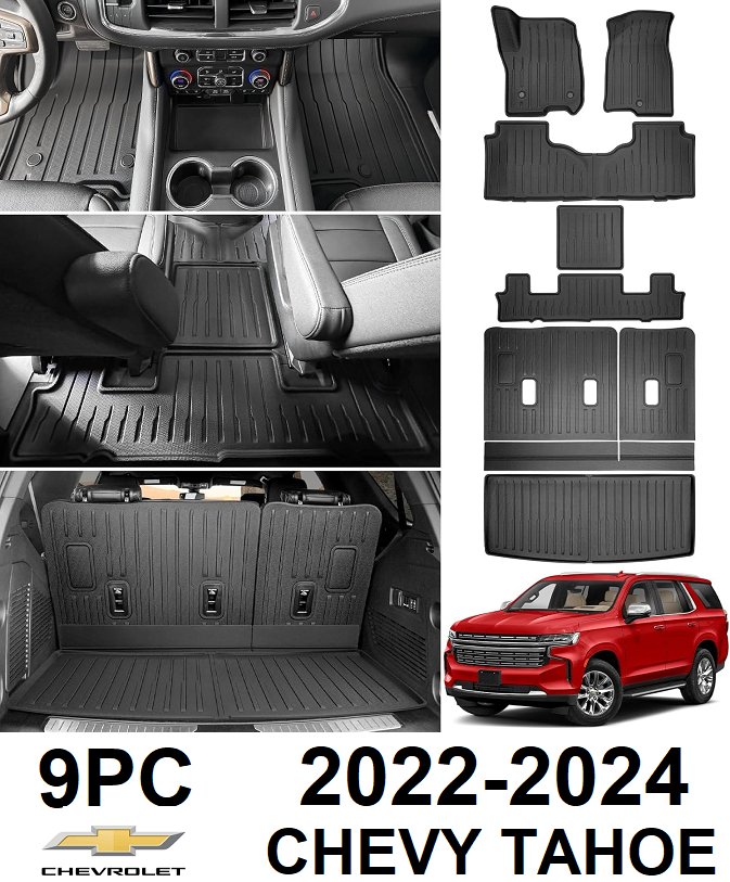 9PC Car Cargo Mats with Floor Liner - Fit for 2022-2024 Chevy Tahoe/GMC - Black