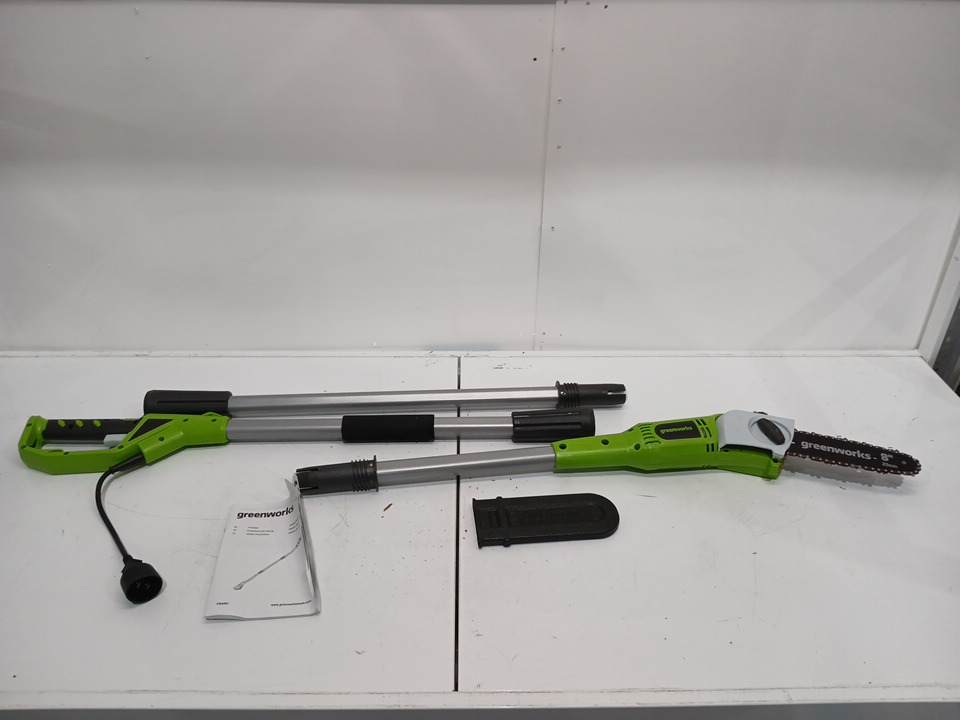 the saw has been tested for power and has some signs of use on the saw and poles.