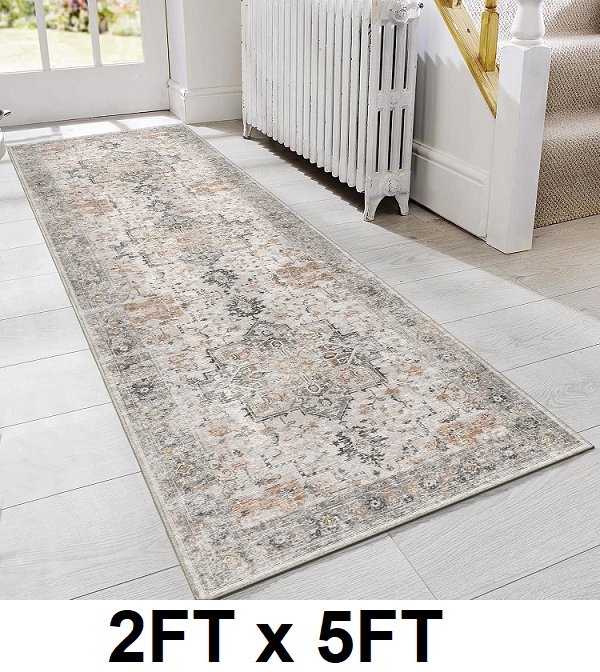 GENIMO NON SLIP MACHINE WASHABLE VINTAGE AREA RUG - 2FT X 5FT - TAUPE