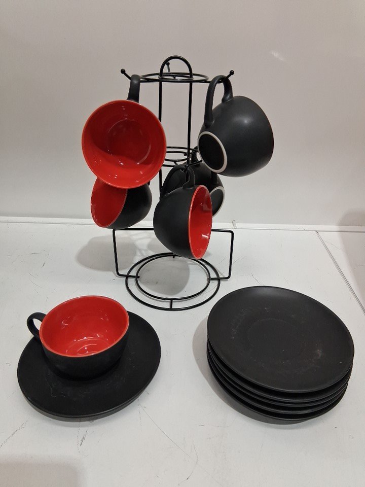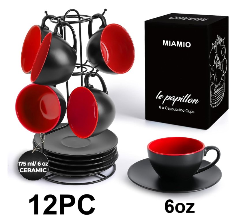6pk MIAMIO Ceramic Stackable Cappuccino Cups Set - 175 ml - black/red
