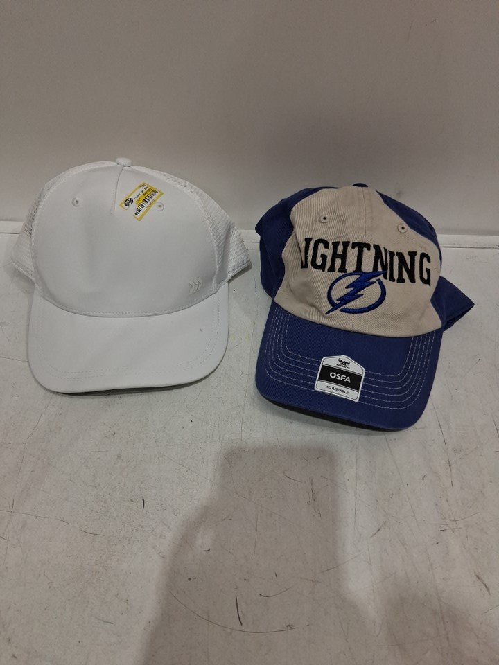 2 ASSORTED ADULT BALL CAPS - OSFM - WHITE / BLUE /BIEGE