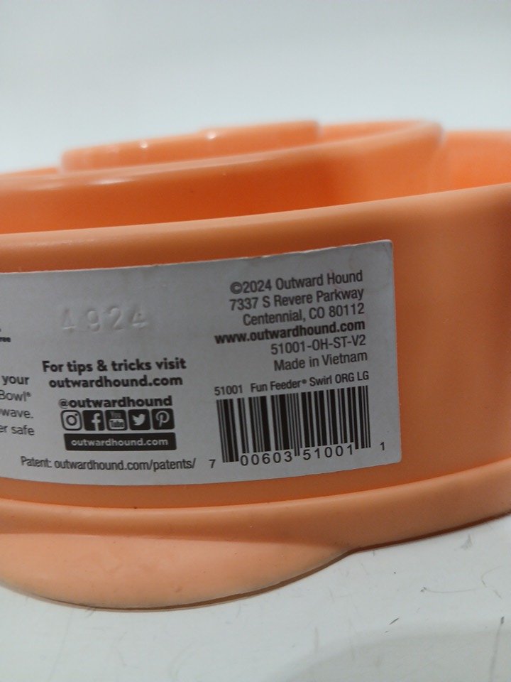 OUTWARD HOUND FUN FEEDER SLOW BOWL, SLOW FEEDER DOG BOWL - EAT UP TO 10X SLOWER - LARGE (UP TO 4 CUPS) - ORANGE