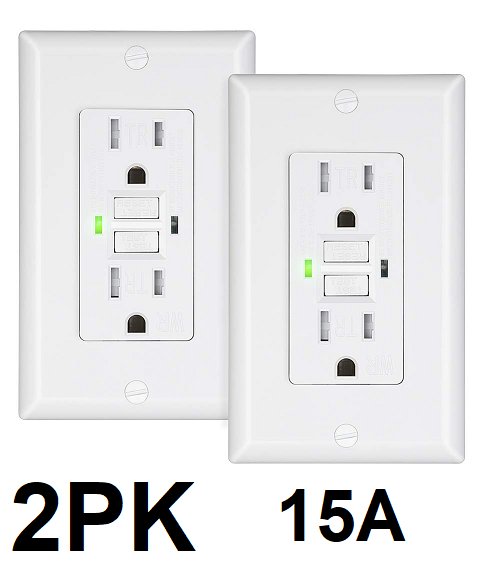 2PK DEWENWILS GFCI OUTLET RECEPTACLE WITH LED INDICATOR - TAMPER RESISTANT - 15AMP - WHITE - (MODEL: HGFB15B)