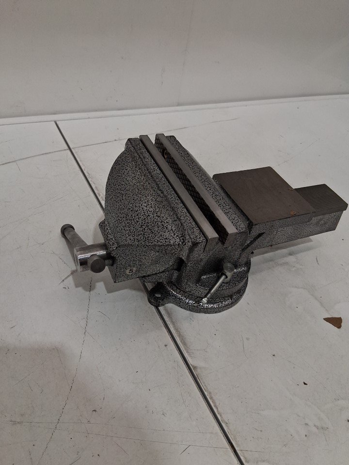 heavy duty swivel anvil table top clamp bench vice with locking base - 6" - grey