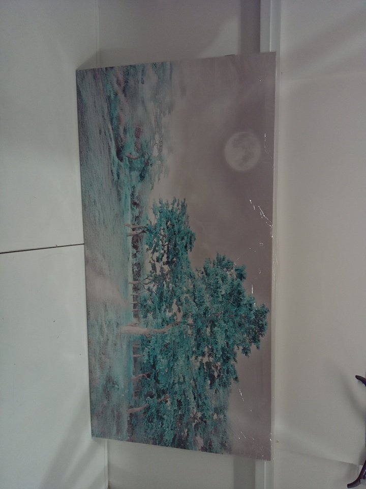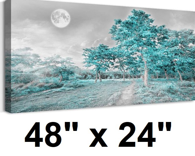 lager canvas wall art Simple Lifeg green moon tree landscape artwork painting - 48" X 24" - BLUE/GREY