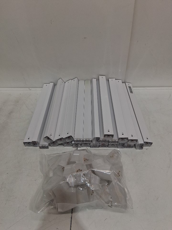 missing power cord, item came repackaged and unable to confirm if lights power on/grid type. missing manual and screws, light stain on one of the lights, see photos