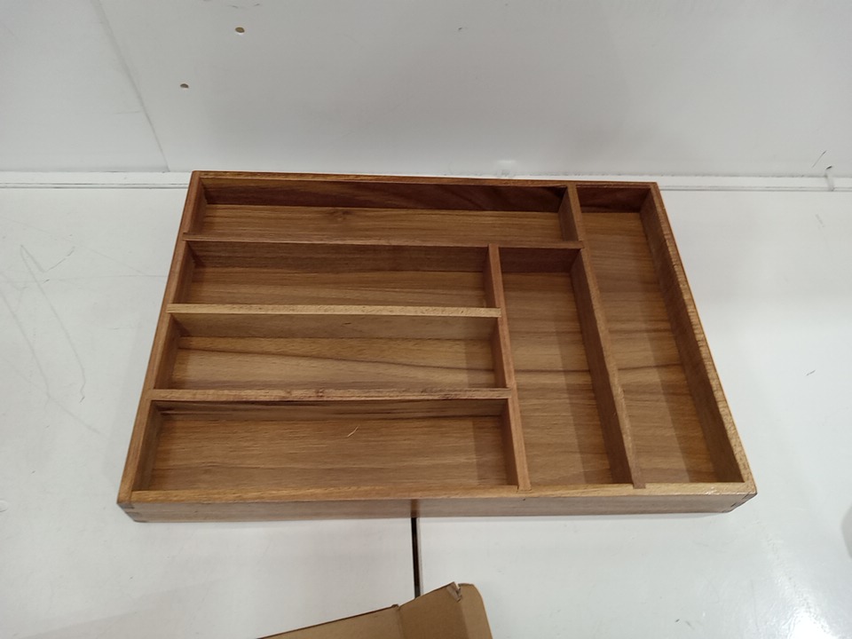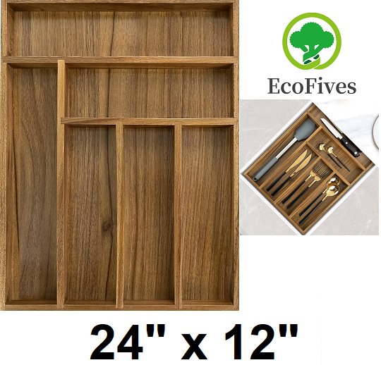 ecofives 6 slot Acacia Kitchen Drawer Organizer - 24" x 12" - brown