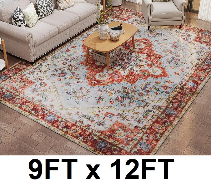 TECHMILLY Machine Washable Non-Slip Area Rug - 9FT x 12FT - Red/Blue