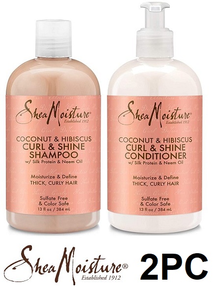 2pc SHEA MOISTURE COCONUT AND HIBISCUS CURL AND SHINE SHAMPOO AND CONDITIONER - 384ml each