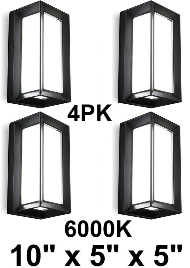 4PK LEDMO Exterior Wall Lights Fixture - IP66, 10" x 5" x 5" - Black/white