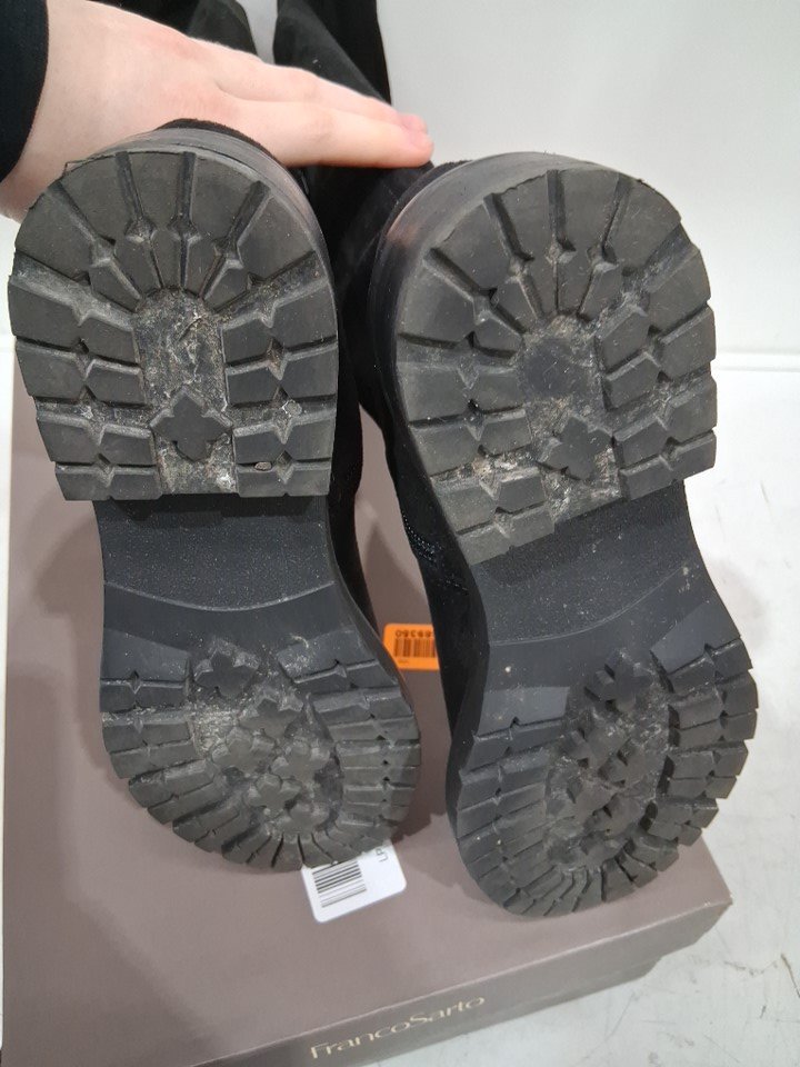 please note the bottoms of the shoes show signs of previous use. see photos.