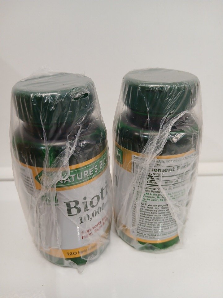 2 (120 softgels) NATURE'S BOUNTY BIOTIN TABLETS to support healthy hair, skin and nails - 10,000 MCG