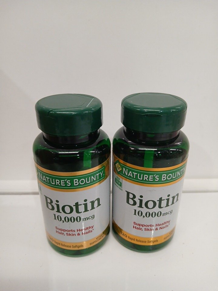2 (120 softgels) NATURE'S BOUNTY BIOTIN TABLETS to support healthy hair, skin and nails - 10,000 MCG