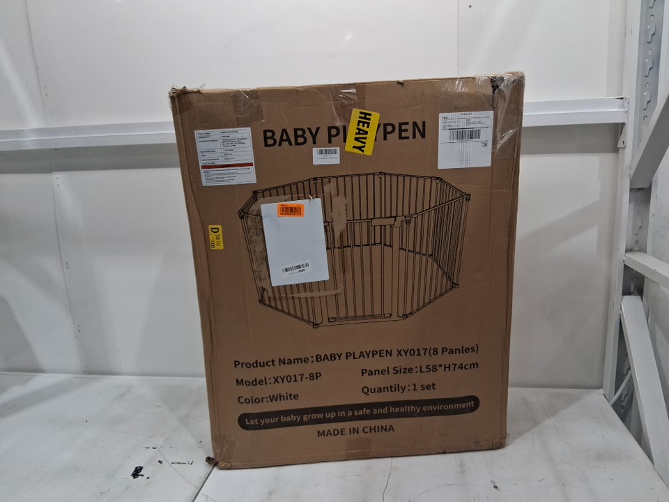 Patywaga baby or pet playpen safety gate extra wide 8 panels - 29.1" x 22.6" per panel - White (Model: XY017-8P)