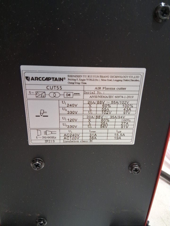 Arccaptain Air Plasma Cutter - 55A, 120V/220V - 3/4" Max - Red/Black (Model: CUT55-digital)