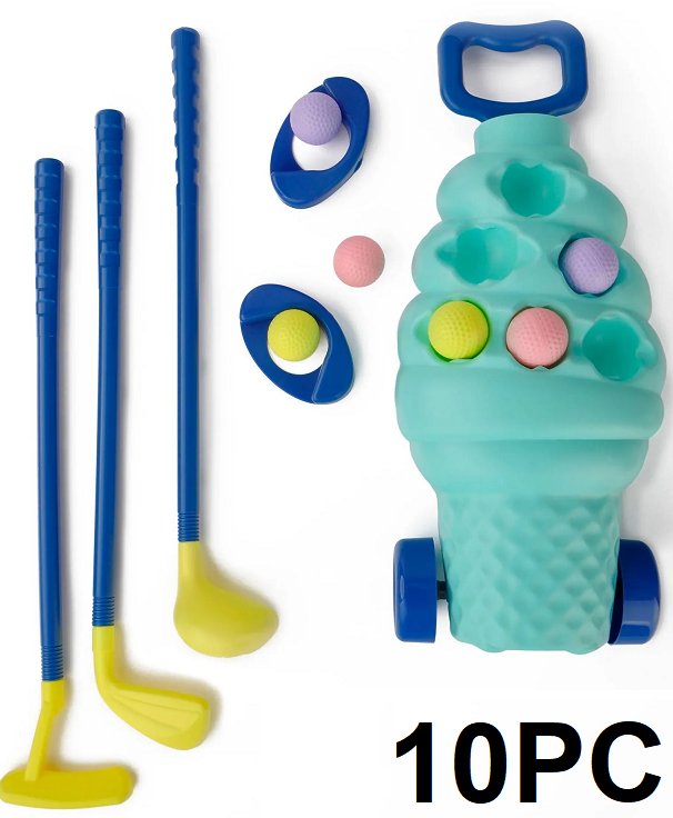 10PC toddler plastic golf set with ice cream cone caddy and balls - blue