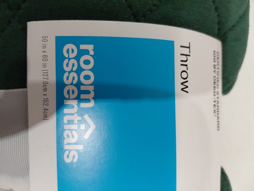 Room Essentials Quilted Jersey Throw Blanket with Faux Shearling Reverse Heathered - 50" X 60" - GREEN
