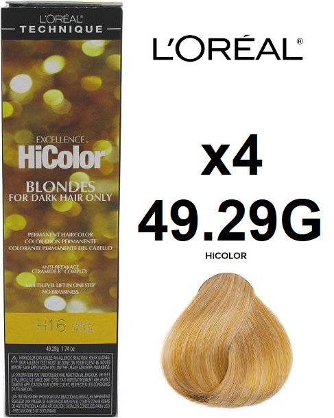 4 l'oreal technique excellence hicolor permanent haircolor creme - 49.29g each - honey blonde