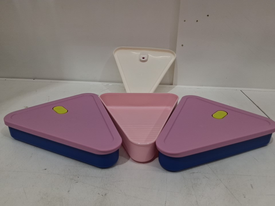 Please See Photos: One of the items has a pink container and a white lid instead of a blue container and pink lid Please note that this listing includes 6PC: 3 Lids 3 Containers