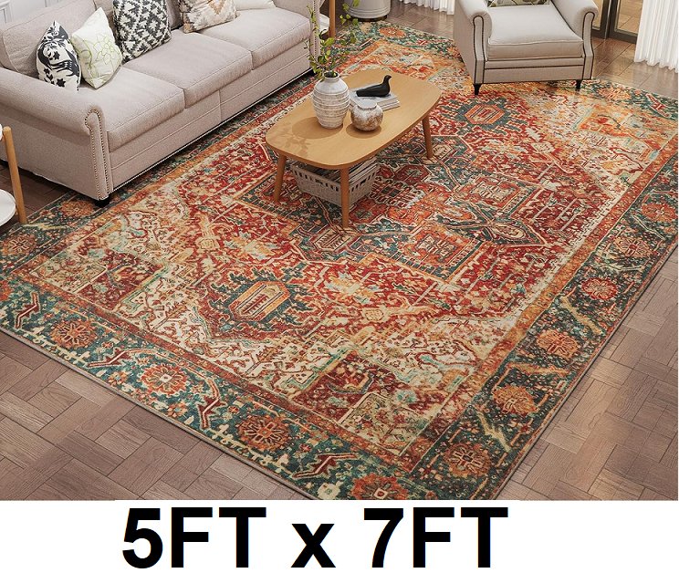 TECHMILLY Machine Washable Non-Slip Area Rug - 5FT x 7FT - Red/Orange