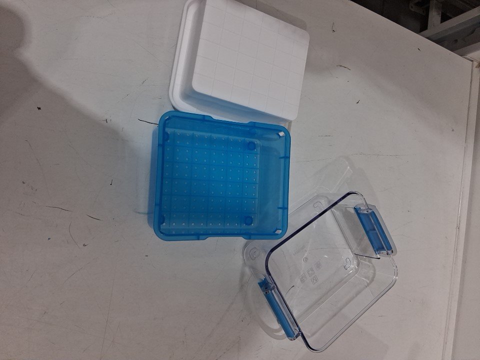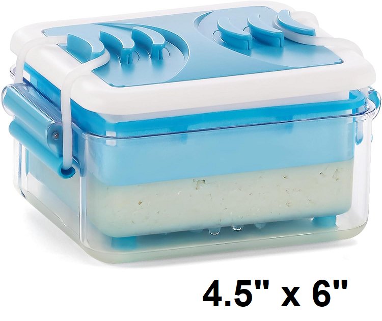 alloada Tofu Press for Quickly Exacting Water from Organic Silken- extra firm - 4.5" x 6" - blue/white