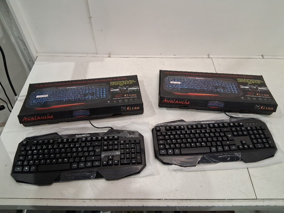 (2) avalanche French Gaming QWERTY Keyboard with Blue Backlight and104 Keys - black/blue (model: g160)