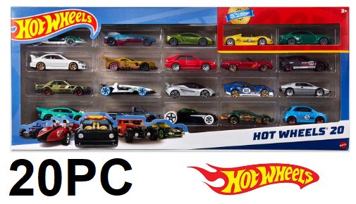 20PK assorted HOT WHEELS toy trucks and cars for play or display - 1:64 SCALE - STYLES MAY VARY (MODEL: DXY59-N0713)