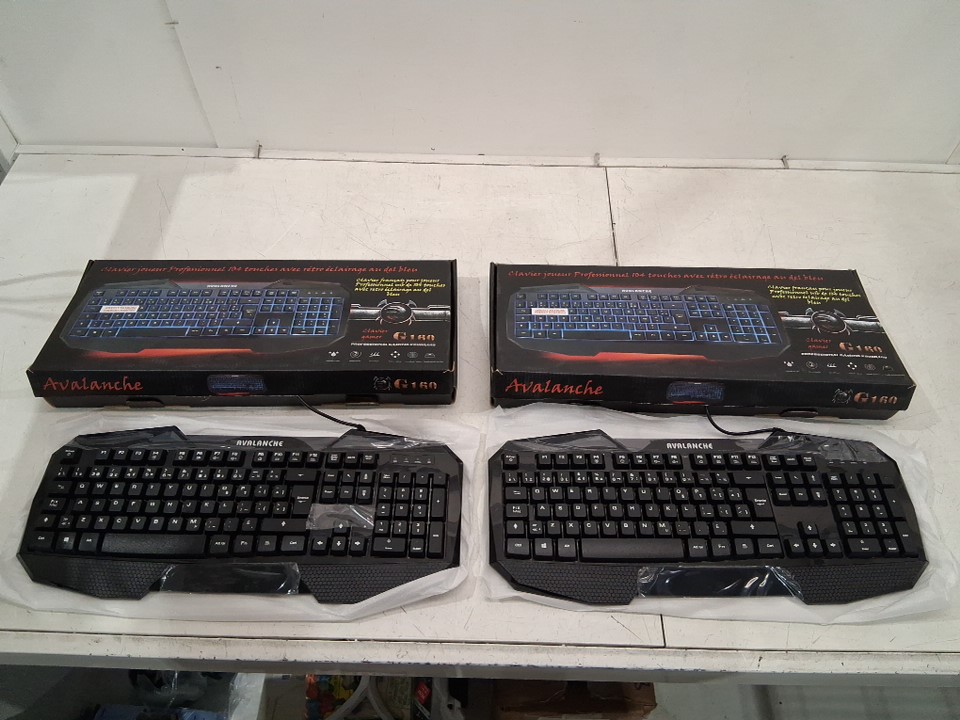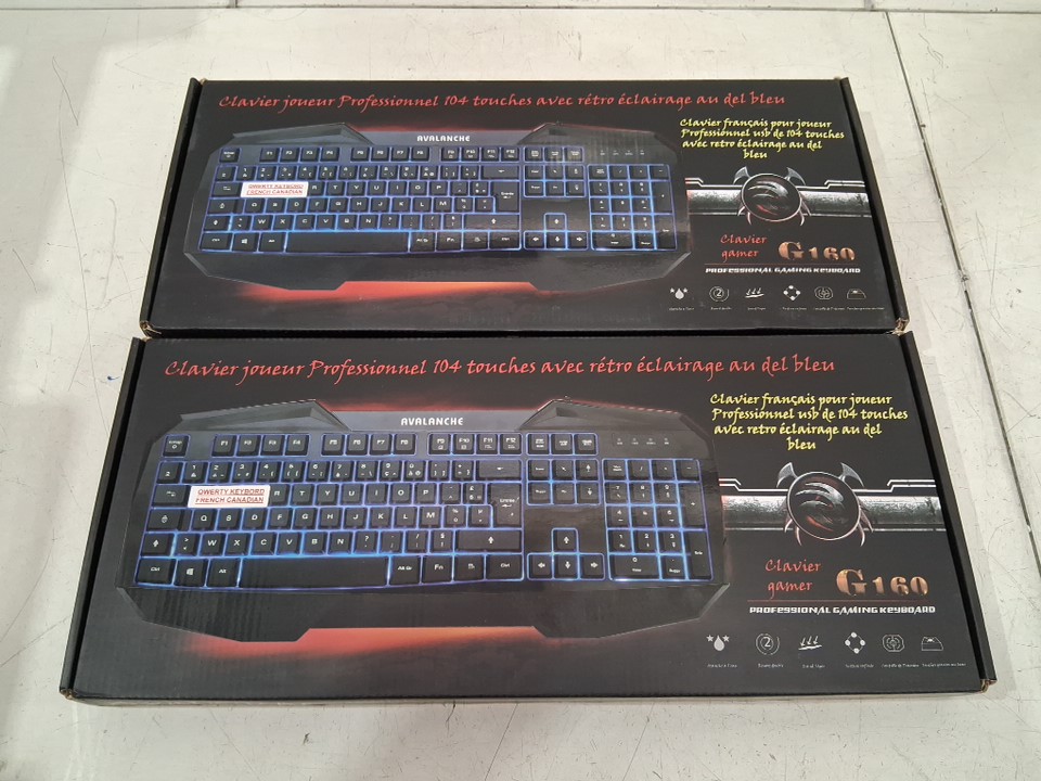 (2) avalanche French Gaming QWERTY Keyboard with Blue Backlight and104 Keys - black/blue (model: g160)