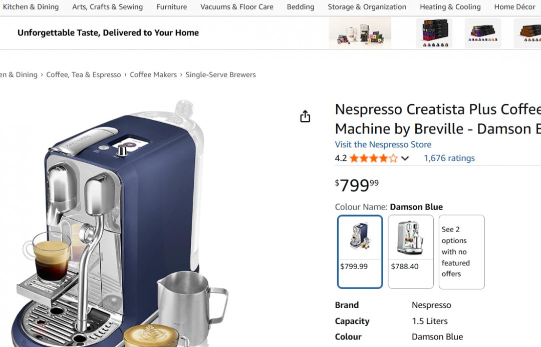 breville Nespresso creatista plus coffee and espresso machine - damson blue (model: ‎BNE800DBL1BCA1)