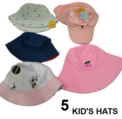 5 TODDLER KID'S HATS - BASBALL AND BUCKET HATS - OSFM