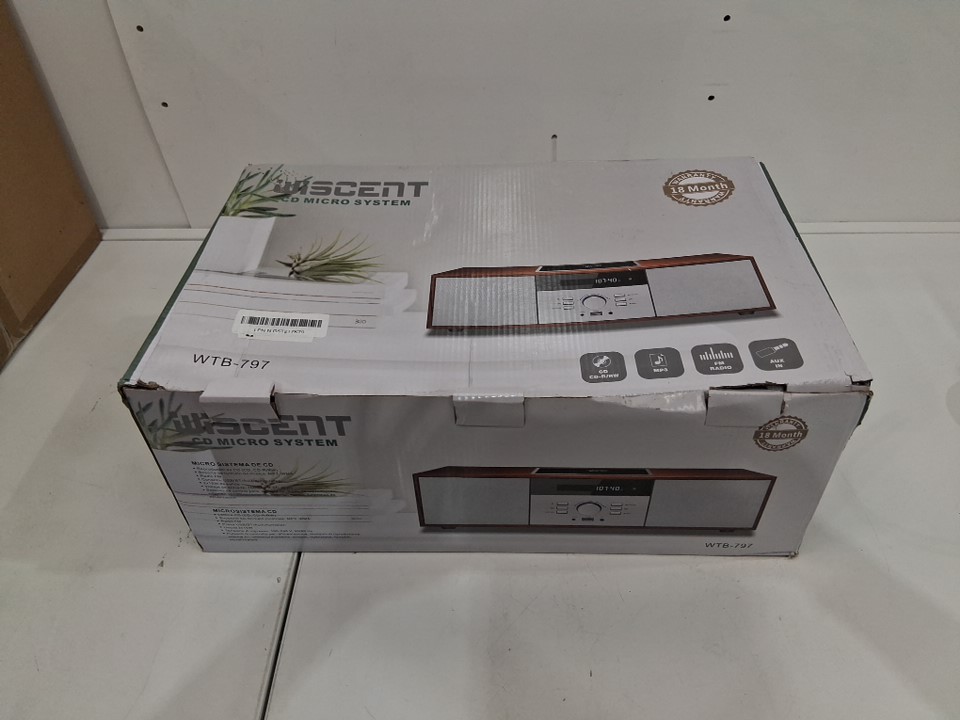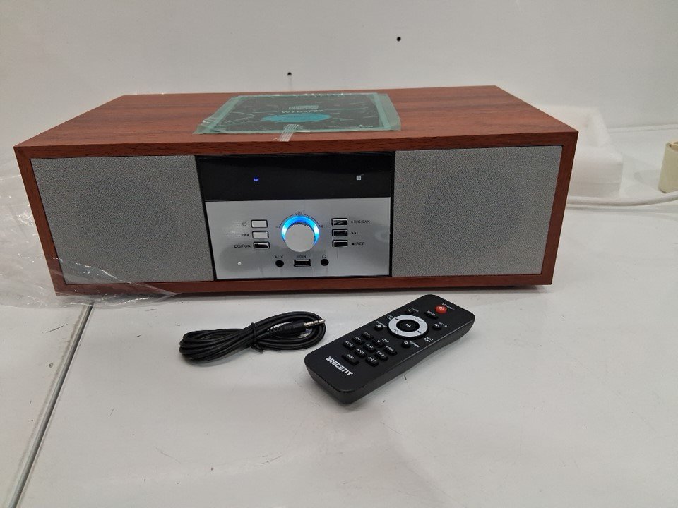 WISCENT STEREO SYSTEM FOR HOME - VINTAGE MICRO HIFI SYSTEMS CD PLAYER WITH BLUETOOTH, FM RADIO, USB, AUX - BROWN (MODEL: WTB-797)