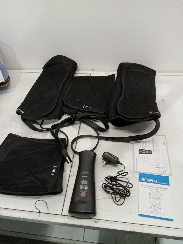 RENPHO AIR COMPRESSION LEG MASSAGER FOR CIRCULATION AND RELAXATION WITH HANDHELD CONTROLLER, 6 MODES & 4 INTENSITIES - BLACK (MODEL: RF-ALM070)