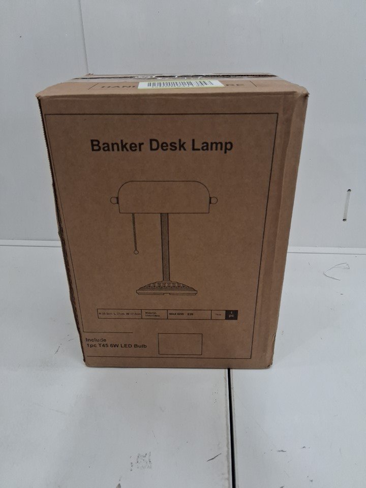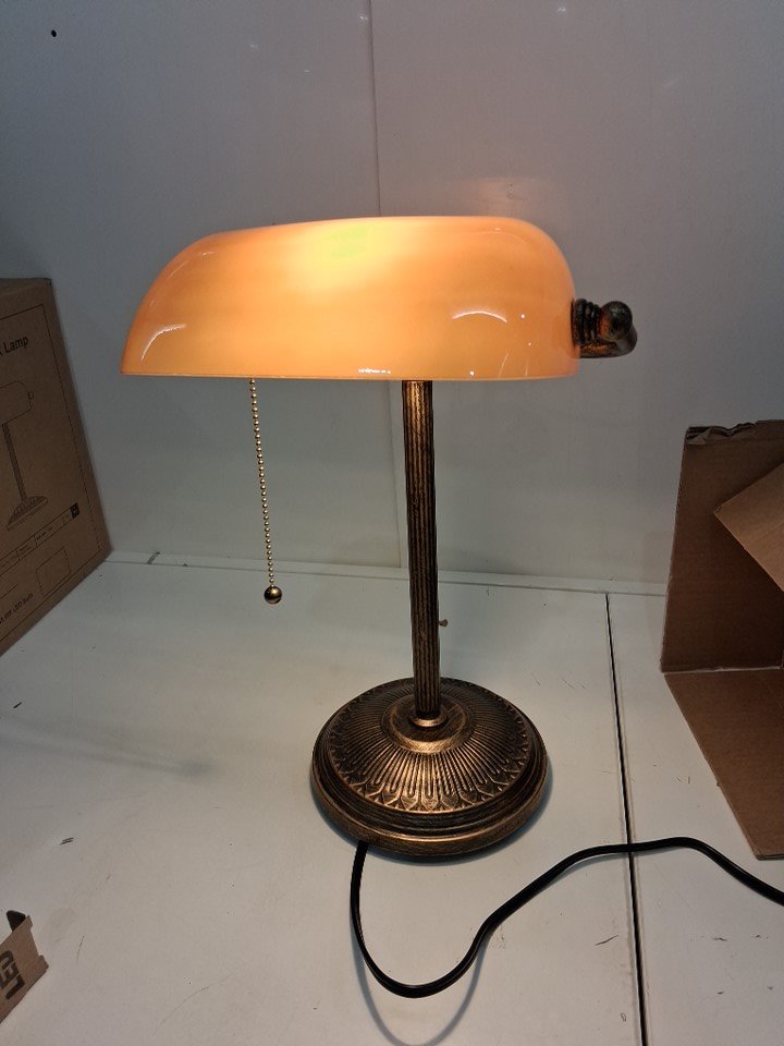 Newrays Glass Bankers Desk Lamp with Pull Chain Switch Plug in Fixture - orange (MODEL: T9007-OG)