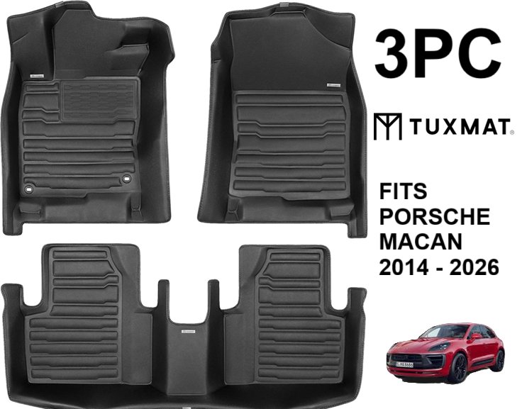 3pc tux mat custom fitted all weather floor protector mats - fits Porsche Macan 2014-2026 - black