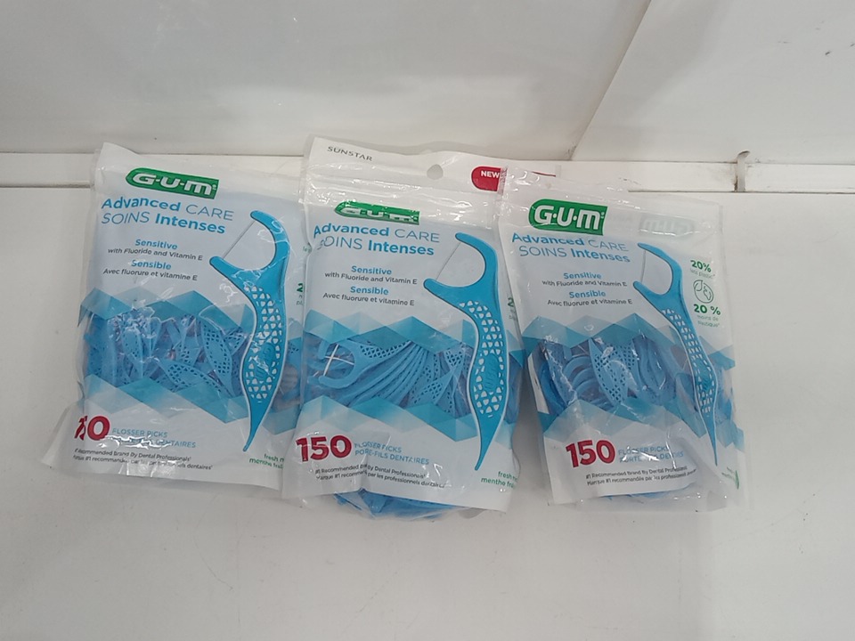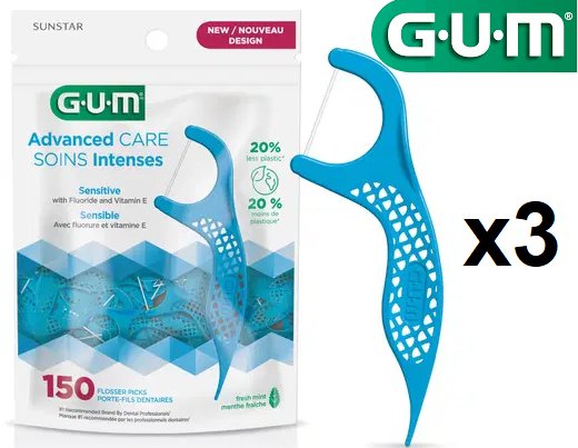 3 (150) g.u.m advanced care sensitive floss sticks ( 450 total)