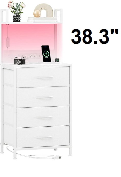 somdot home 4 drawer night stand with usb charging station - 15.8" x 38.3" x 11" - white (model: ns108c09)