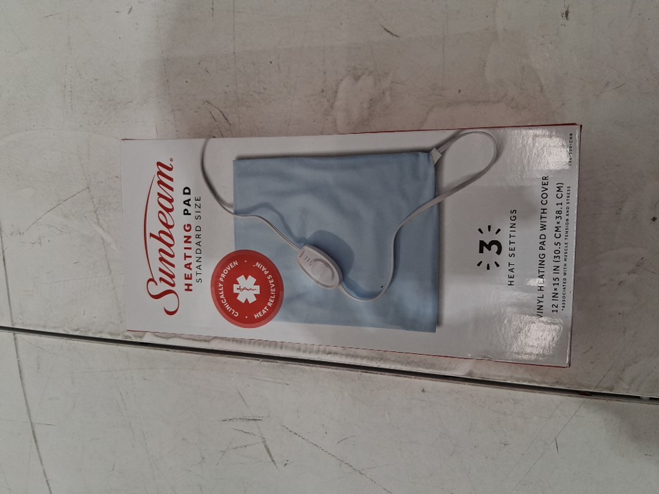 SUNBEAM CLASSIC STANDARD SIZE HEATING PAD WITH 3 HEAT SETTINGS - 12" x 15" - blue (MODEL: 756-500-CNR)