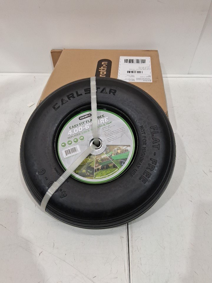 Marathon replacement easy fit flat free tire for wheelbarrow - 4.00-6" - 5/8" axle - 1.75" - 6" hub - Black (Model: 00296)