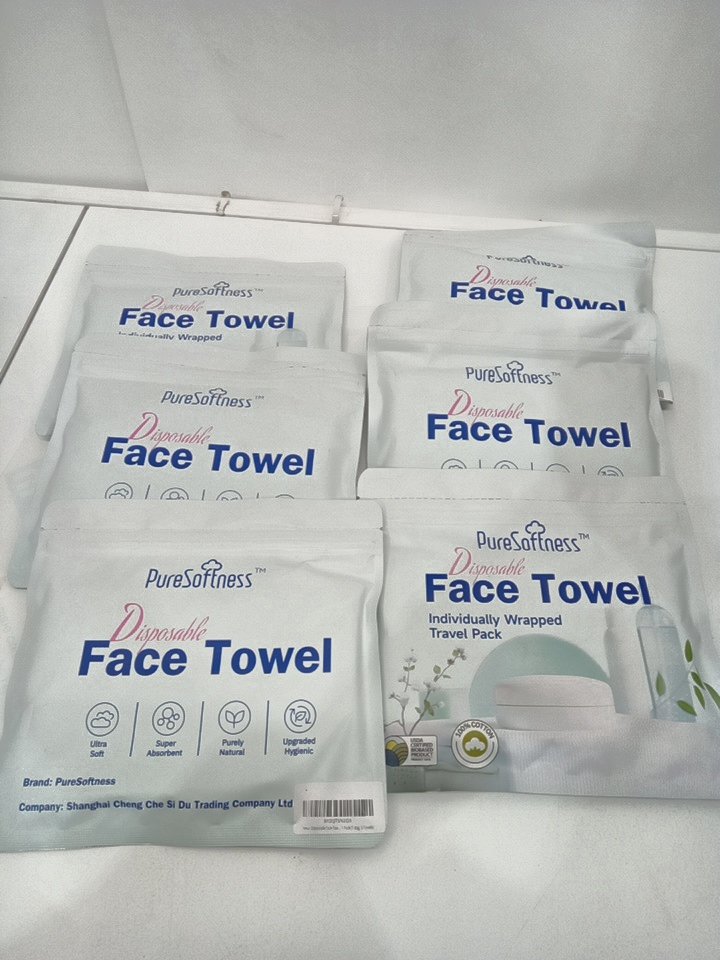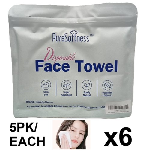 6 (5PK) PURESOFTNESS disposable face towel individually wrapped travel pack