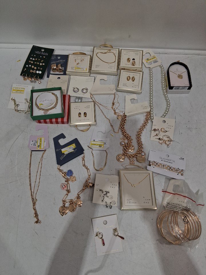 21+ assorted earrings , necklaces and bangles jewelry - various styles - gold/silver